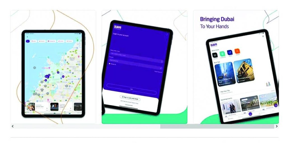ولهذا تحظى دبي بعدد هائل من «التطبيقات» التي تشمل أوجه الحياة كافة، وفي الحياة الثقافية هناك عدد لا يستهان به منها، مثل تطبيق «دبي للثقافة»، الذي يمثل احتفاء تفاعلياً بأبرز المواقع والمعالم السياحية والأحداث في الإمارة، فضلاً عن التُّحف والآثار المكتشفة فيها حديثاً، ويُمكّن التطبيق المستخدمين من اكتشاف مناطق الجذب في الإمارة عبر مشاهد بانورامية أو خرائط أو مناظر أخّاذة، كما يقدم التطبيق كل ما يحتاجه الإنسان من تفاصيل بما في ذلك الخرائط والأوصاف والمعارض، وساعات العمل، ومعلومات الاتصال، وغيرها الكثير.