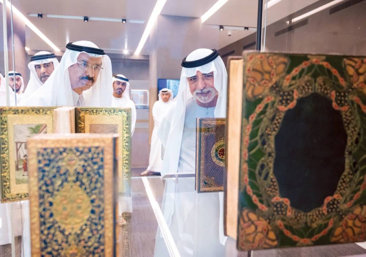 واستهل معالي الشيخ نهيان بن مبارك جولته بزيارة معرض الذخائر في المكتبة، حيث اطلع على مجموعة واسعة من المخطوطات النادرة والقطع الفنية المتفردة من المخطوطات العربية والإسلامية والعالمية في مجالات عدة مثل الطب، والعلوم، والفلك، والأدب، إضافة إلى مقتنيات ثقافية وفنية تمثل حقباً مختلفة من تاريخ المنطقة والعالم.