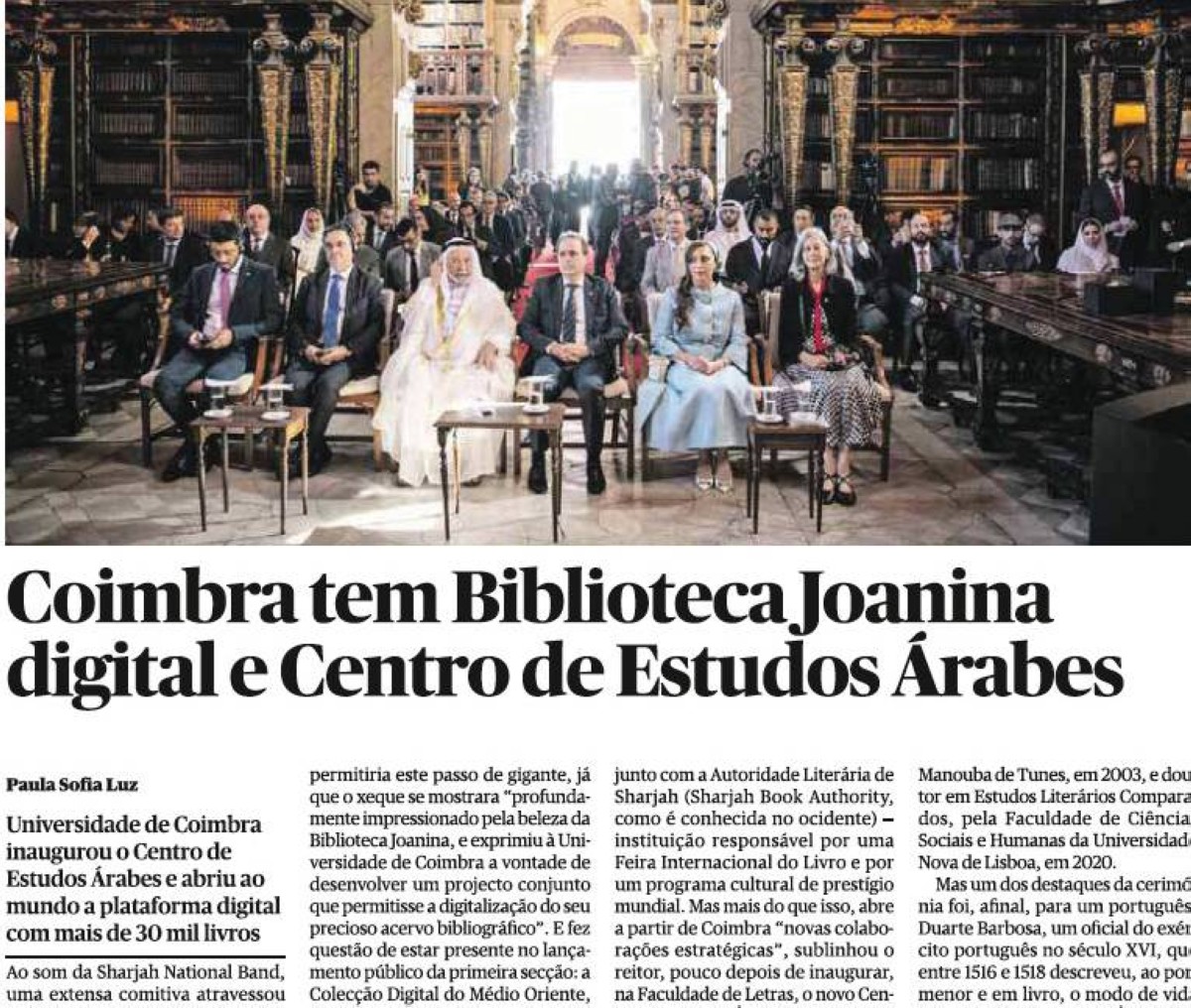 ونقلت صحيفة «دياريو دي كويمبرا»، أوسع الصحف انتشاراً في إقليم كويمبرا، تفاصيل مبادرات الشارقة في البرتغال، والجهود التي يقودها حاكم الشارقة، ووصفت الحدث بأنه «علامة فارقة في تاريخ جامعة كويمبرا»، مشيرة إلى أن جهود الشارقة تعبّر عن التقاء حضارتين تشتركان في ذاكرة إنسانية عميقة.