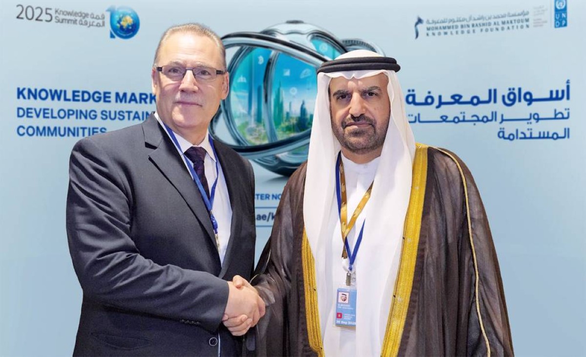 ومن خلال شراكتنا مع مؤسّسة محمد بن راشد آل مكتوم للمعرفة، نسعى إلى تحويل المعرفة إلى قوة دافعة للتنمية الشاملة، تُسهم في صياغة مستقبل أكثر إنصافاً وازدهاراً للبشرية جمعاء».