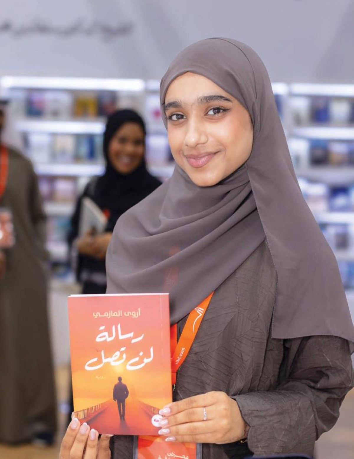 الفتاة الإماراتية أروى المازمي، الطالبة بالصف العاشر في مدارس التكنولوجيا التطبيقية، تعد إحدى أصغر الروائيات التي ينشر لها إصدار ويطرح في فعاليات معرض الشارقة الدولي للكتاب.