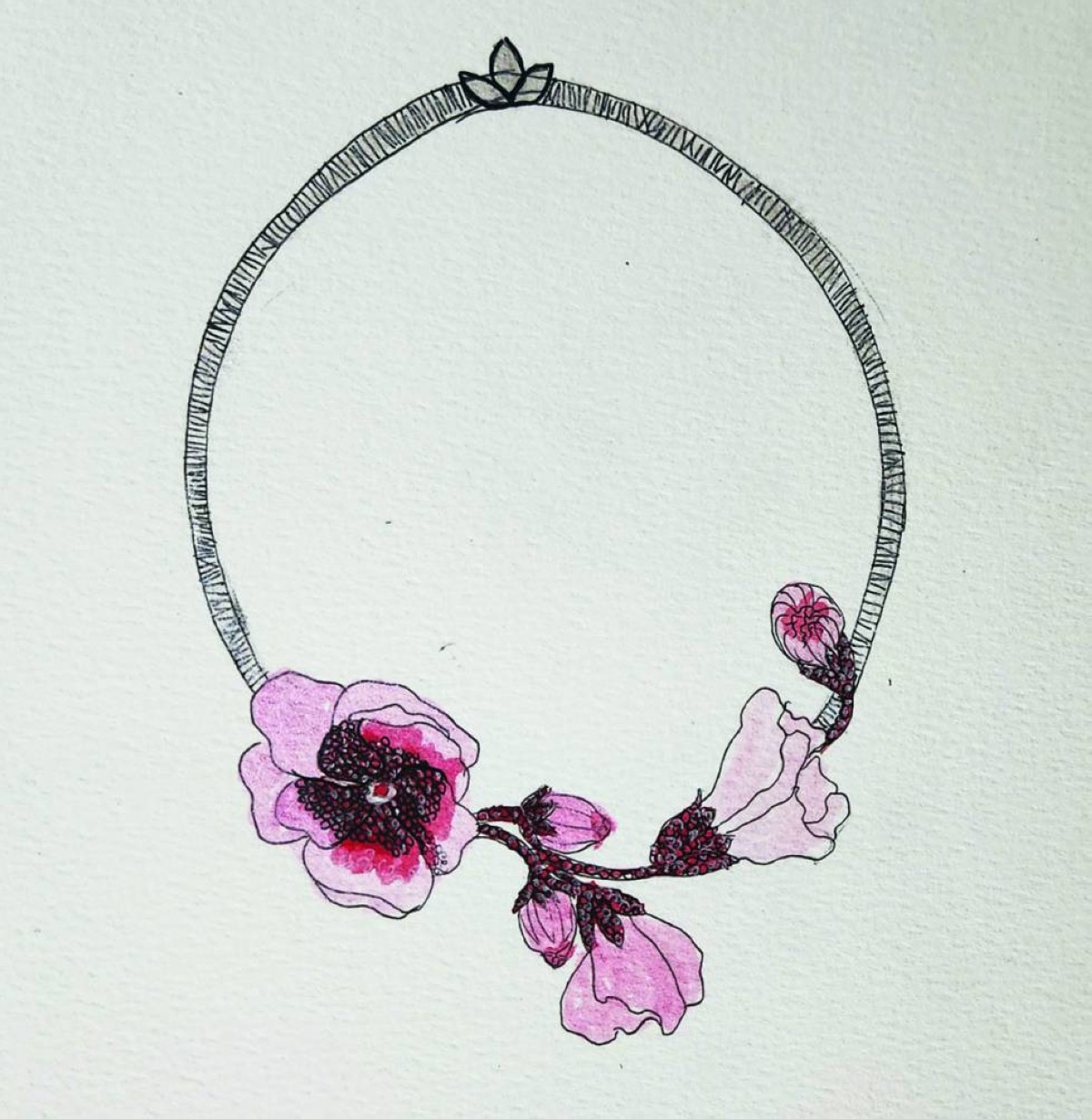 لإضافة لمسة خالدة ورومانسية إلى التصميم المستوحى من هذه الزهرة، القلادة مصنوعة من طوق من الذهب الأبيض كقاعدة للقلادة لتبدو فاخرة. أما الزهور مصنوعة من حجر الياقوت بتدرج كامل من الأحمر الداكن إلى الفاتح والوردي لمحاكاة لون بتلات الكركديه وإضافة طبقة إضافية من الأناقة. أعتقد أن التباين بين بريق الماس وثراء الياقوت سيجعلها قطعة فنية راقية.