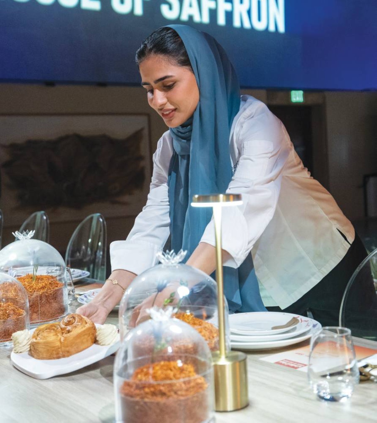 من جانبها، أكدت مبتكرة قائمة العشاء الأولى في المهرجان ميثاء الورشو، أول شيف إماراتية تحمل شهادة بكالوريوس في الطهي والفندقة، أن قائمة الطعام، التي صممتها، احتفت بهوية المطبخ الإماراتي المعاصر وأطباق «الفيوجن»، المستوحاة من التقاليد المحلية بنكهة الزعفران كلفائف خبز الزغفران ومقبلات «تاكيتو الروبيان وصلصة مايونيز الزعفران»، إلى جانب الطبق الرئيسي «لحم ضأن مغطى بقشرة الفستق وبطاطا مهروسة بالزعفران»، بالإضافة إلى حلوى «كريمة بروليه بالزعفران».