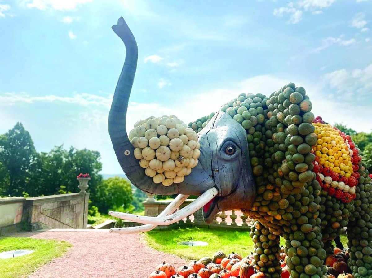 ويشتمل المعرض على 18 منحوتة مصنوعة من آلاف ثمار اليقطين المزخرفة والصالحة للأكل.