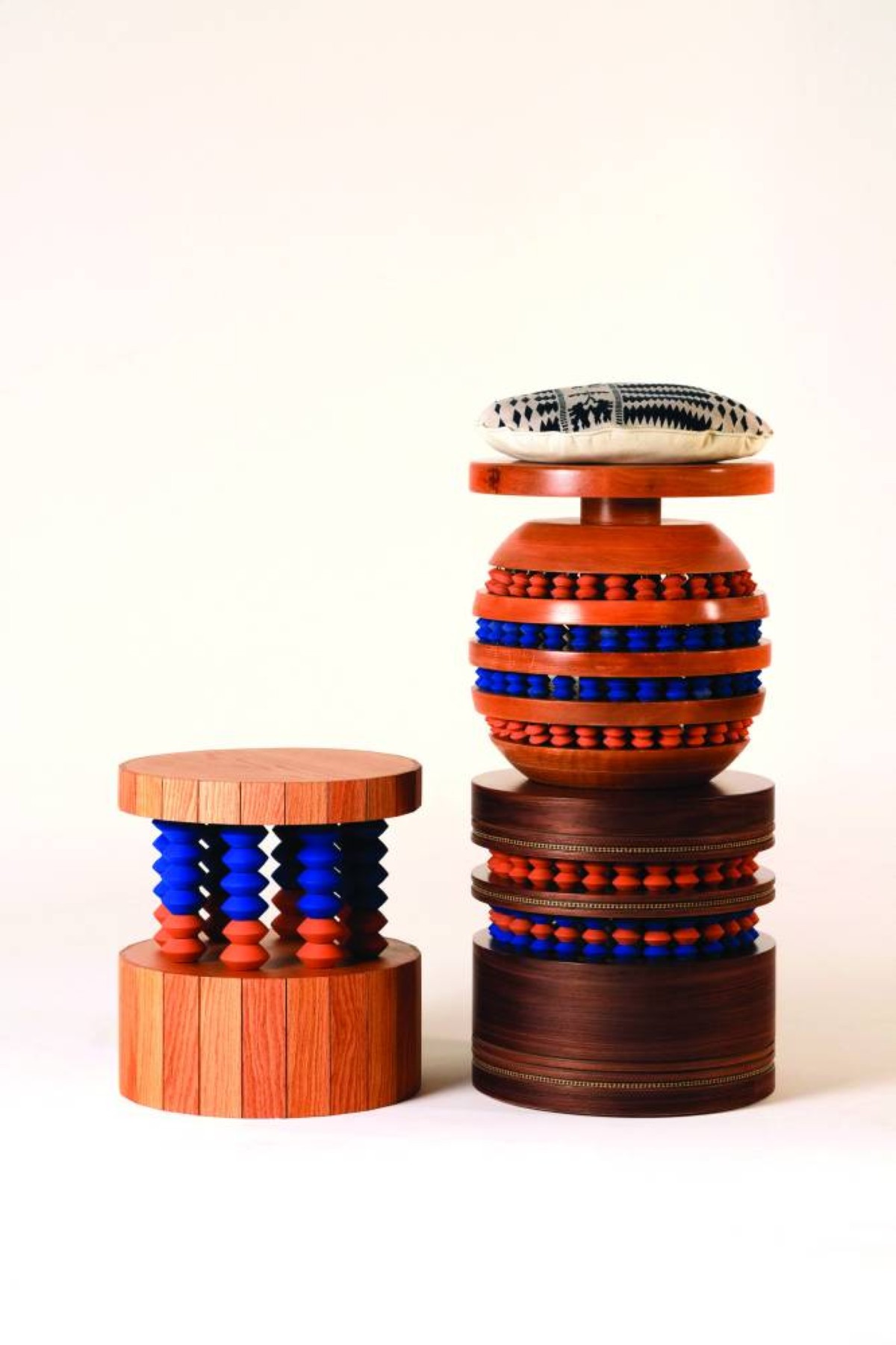 أما مصباح «فيء» المعلق فإنه يعزز الاستدامة من خلال استخدام مواد طبيعية ومحلية، في حين أن طاولة معروضات الزينة «بو نجمة» مستوحاة من الأبواب الفولاذية الأيقونية التي كانت سائدة في دولة الإمارات العربية المتحدة في ثمانينات القرن الماضي، و«كنوز» المستوحاة من أساليب النحت التقليدية، وطاولة القهوة من مجموعة «سند» التي تستخدم الحجارة المهملة كمادتها الأساسية.