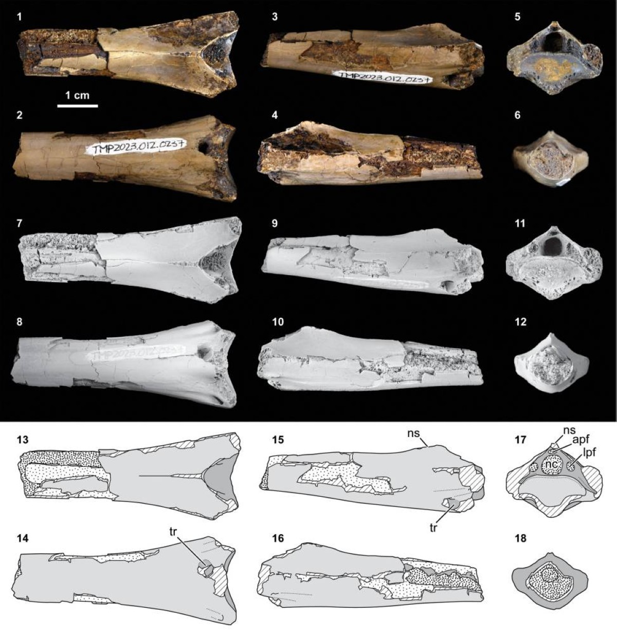 وفقاً لدراسة نشرت في مجلة علم الحفريات، فإن عظمة عنق متحجرة لزاحف طائر اكتشفت في كندا، تظهر دليلاً على عضة من مخلوق يشبه التمساح قبل 76 مليون عام. والأحفورة، التي عُثر عليها في منتزه، لها علامة ثقب مميزة يعتقد الباحثون أنها ناجمة عن سن تمساح.