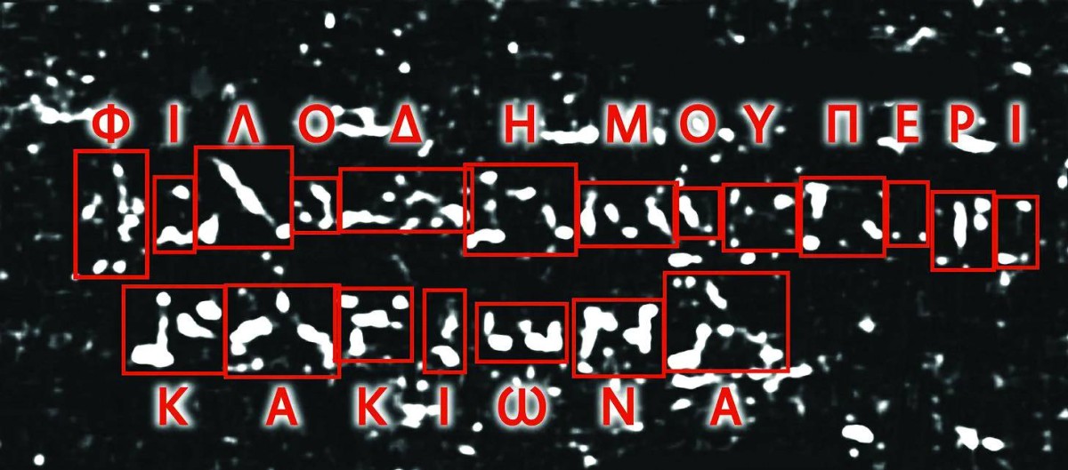 وكشفت آثار الحبر المرئية في صور الأشعة السينية، أن النص جزء من عمل متعدد المجلدات بعنوان «عن الرذائل»، كتبه الفيلسوف الأبيقوري فيلوديموس في القرن الأول قبل الميلاد. وهذه اللفافة هي واحدة من ثلاث لفائف من مدينة هيركولانيوم التاريخية، محفوظة في مكتبة بودليان في أكسفورد.