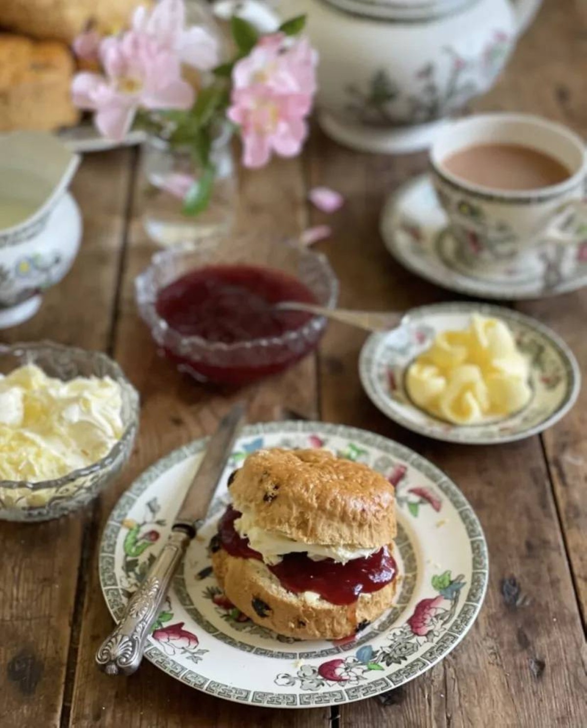 أما "شاي الكريمة" (Cream Tea) فهو نوع محدد يقتصر على كعكات "سكونز" والمربى والكريمة المتخثرة (Clotted Cream)، مع جدل لا ينتهي حول ترتيب وضع المكونات.