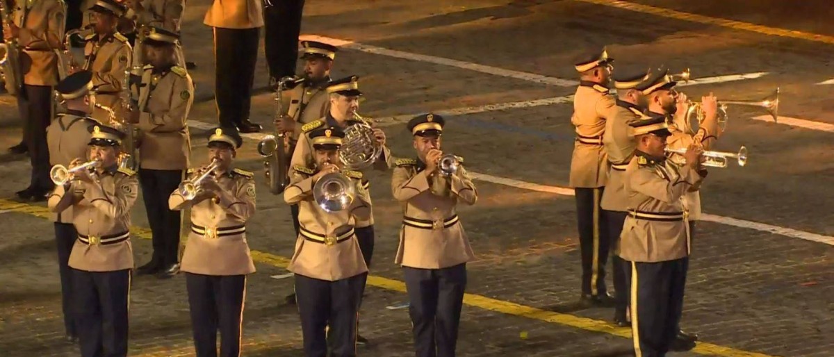 خطفت أوركسترا أكاديمية شرطة الشارقة أنظار جمهور الساحة الحمراء في موسكو، خلال مشاركتها المتميزة في النسخة الـ 17 من مهرجان «برج سباسكايا» الدولي للموسيقى العسكرية، بعد أن قدمت أداءً فنياً رفيعاً أبرز ثراء الثقافة الإماراتية.
