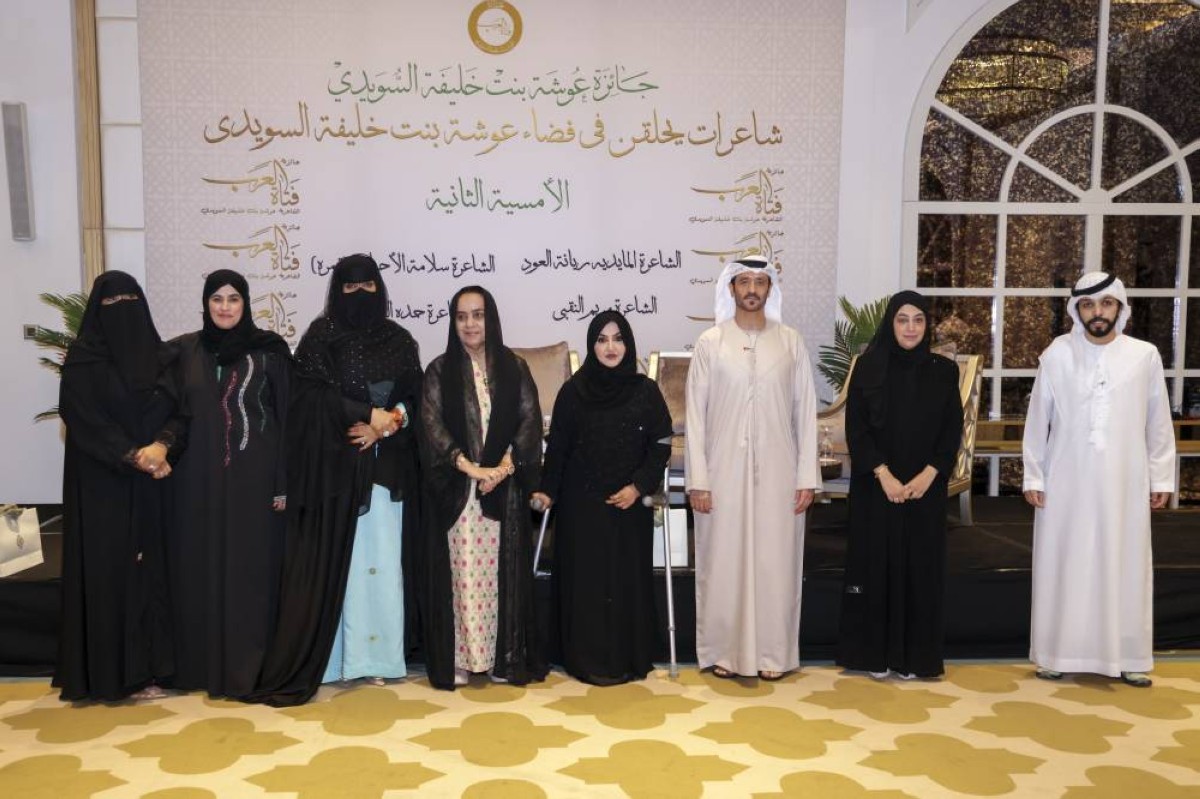 نظمت جائزة عوشة بنت خليفة السويدي "فتاة العرب"، أمسيتها الشعرية الثانية، تحت عنوان "شاعرات يحلقن في فضاء عوشة بنت خليفة السويدي"، والتي تأتي في إطار جهود الجائزة لتعزيز حضورها الثقافي والمجتمعي وإثراء المشهد الشعري الإماراتي والخليجي.