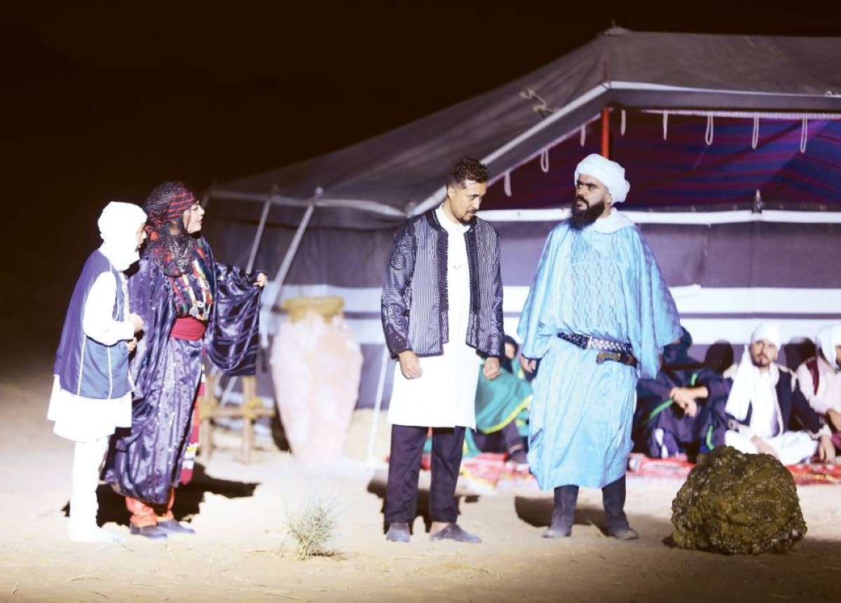 وباعتبارها تقليداً تاريخياً مفعماً بالدلالات والرموز والانتماء الهوياتي من جهة، ومنبعاً إبداعياً وجمالياً يشكل فرجة متكاملة الأركان في حد ذاته، وأرضية خصبة قابلة للاستثمار الجمالي في أفق تطوير صناعة الفرجة بالمسرح الصحراوي على جميع الأصعدة، كتابة وإخراجاً.