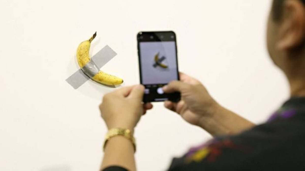 ففي أحد فنادق هونغ كونغ الفاخرة، أكل جاستن صن، وهو رجل أعمال صيني أميركي ومؤسس منصة "ترون" للعملات المشفرة، الموزة التي تمثل عملا فنيا أمام عشرات الصحافيين والمؤثرين.