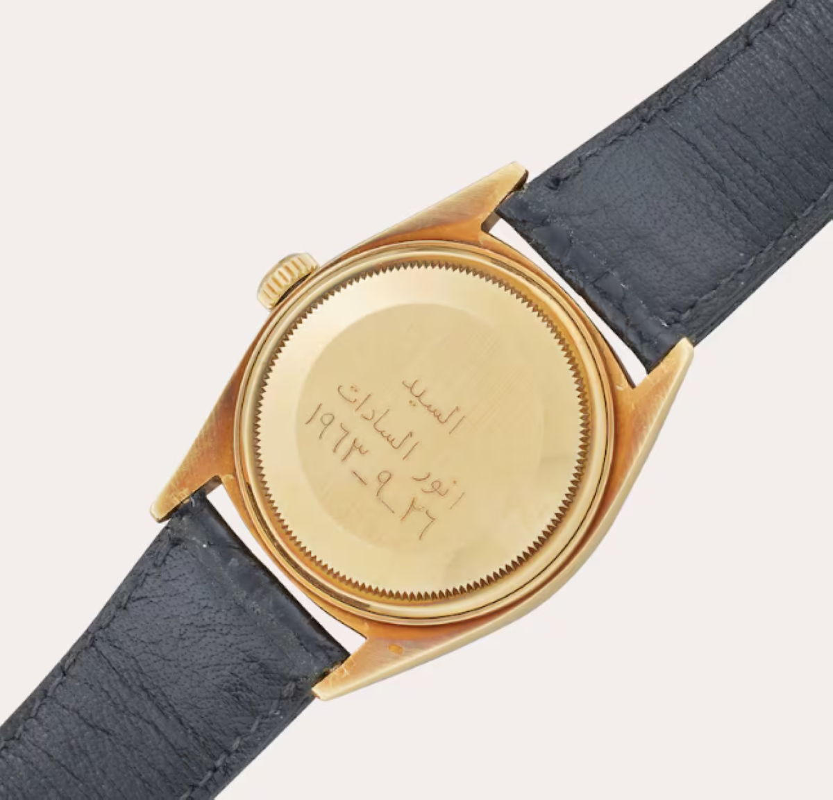 ومن المقرر أن تعرض دار سوذبيز الساعة في مزادها بنيويورك الأميركية الذي يقام خلال السادس من ديسمبر الجاري، ومن المتوقع أن يصل سعرها إلى آلاف الدولارات، في حين أن ثمنها في عام 1963 وقت تصنيعها لم يتجاوز 700 دولار أميركي، ووفقاً للمعلومات التي قدمها أحفاد الزعيم الراحل فإن الساعة نقش عليها التاريخ واسم الرئيس الراحل محمد أنور السادات، إذ كان هو من أهداها لصديقه ناصر وقتها.