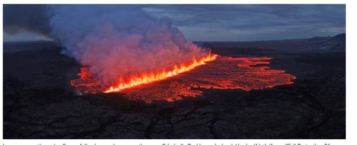 شهدت شبه جزيرة ريكيانيس الأيسلندية، أمس، ثورانها البركاني الثاني عشر، خلال ما يزيد على أربعة أعوام، حيث تدفقت الحمم البركانية من صدع حدث بعد سلسلة زلازل شهدتها المنطقة قبل ساعات. وأكد مكتب الأرصاد الجوية الأيسلندي وقوع الثوران قبيل الساعة 04 بتوقيت جرينتش.