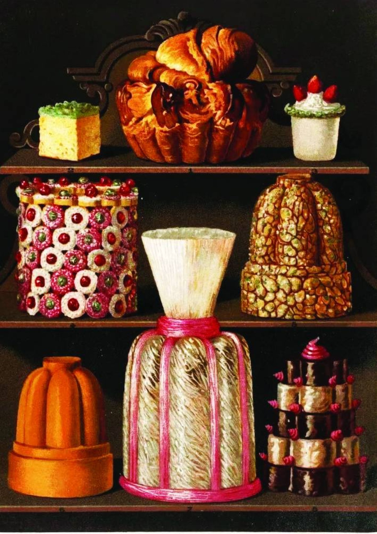 أما على مستوى الأعمال الفنية المعاصرة، فقد أُعرضت لوحة لبييت موندريان، من عام 1914، بجانب نسخة فنية لمجسم «جاتو المارزيبان»، الذي أُنشئ باستخدام تقنيات حديثة. تُظهر هذه الأعمال كيف يمكن للحلويات أن تتداخل مع مفاهيم الفن الحديث، وتُبرز مهارات الفنانين في تحويل المواد إلى لوحات فنية حية، بواسطة أدوات معقدة لصناعة التماثيل والديكورات من السكر.