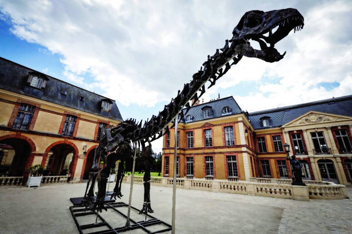 بيع الهيكل العظمي لديناصور «فولكين» العملاق، الذي يبلغ طوله 5. 20 متراً، وهو من فصيلة ديناصورات «أباتوسورس»، في مزاد علني بباريس، حسب ما ذكرت دارا «كولين دو بوكاج» و«بارباروسا» للمزادات.