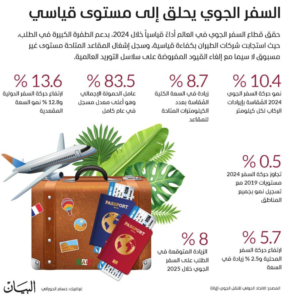 حقق قطاع السفر الجوي في العالم أداءً قياسياً خلال 2024، بدعم الطفرة الكبيرة في الطلب، حيث استجابت شركات الطيران بكفاءة قياسية، وسجل إشغال المقاعد المتاحة مستوى غير مسبوق لا سيما مع إلغاء القيود المفروضة على سلاسل التوريد العالمية.