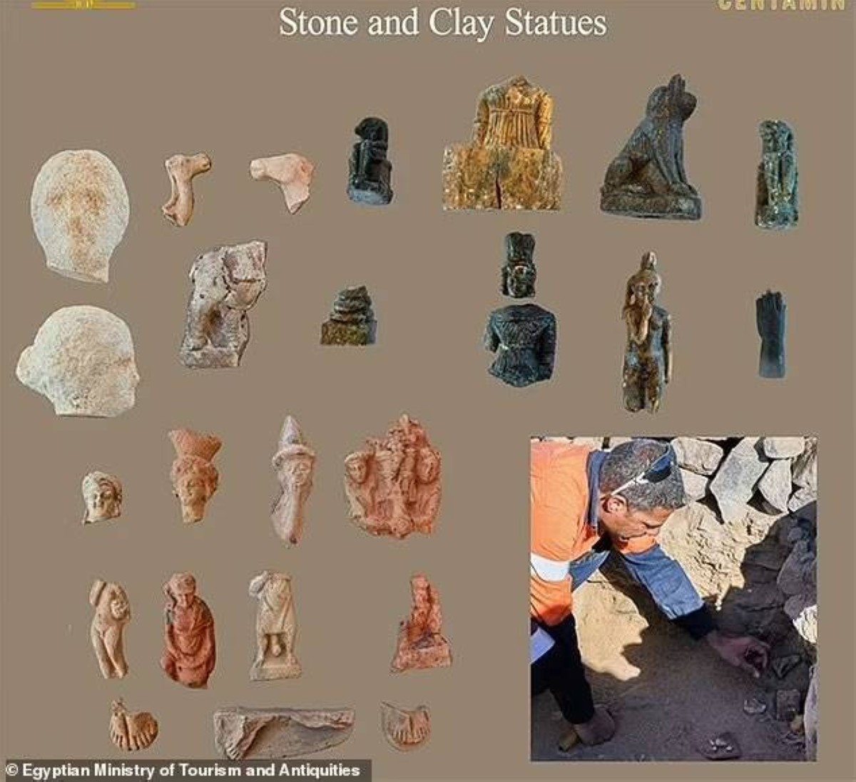 ومن بين القطع الأثرية العديدة مجموعة من 628 قطعة فخارية وحجارة منقوشة بالكتابات الهيروغليفية والديموطيقية واليونانية، وفقا للباحثين.