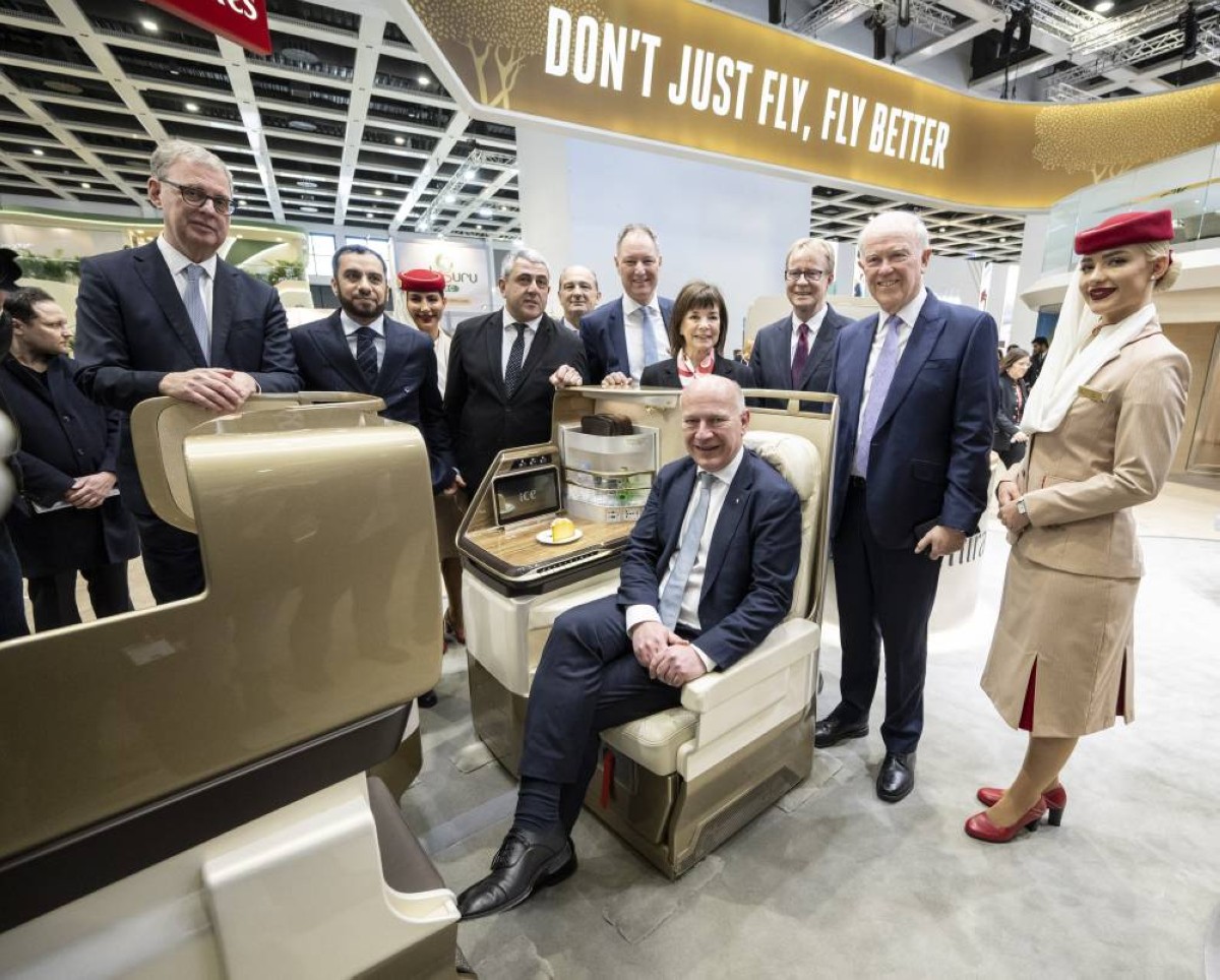 استقبل السير تيم كلارك، رئيس طيران الإمارات، وعدنان كاظم، نائب رئيس والرئيس التنفيذي للعمليات التجارية في طيران الإمارات، ونبيل سلطان، النائب التنفيذي للرئيس لمبيعات المسافرين والإدارة الدولية في طيران الإمارات، وفداً من كبار الشخصيات تضمّن كاي فيغنر، عمدة مدينة برلين، وديتر جانيسيك، منسق الحكومة الفيدرالية للصناعة البحرية والسياحة، الأمين العام لمنظمة السياحة العالمية التابعة للأمم المتحدة، وجوليا سيمبسون، الرئيسة والمديرة التنفيذية لمجلس السفر والسياحة العالمي، ونوربرت فيبيج، رئيس رابطة السفر الألمانية، والدكتور ماريو توبياس، الرئيس التنفيذي لشركة ميسي برلين، في جناح طيران الإمارات في جولتهم الرسمية في افتتاح نسخة هذا العام من معرض برلين الدولي للسياحة والسفر «آي تي بي برلين 2025».
