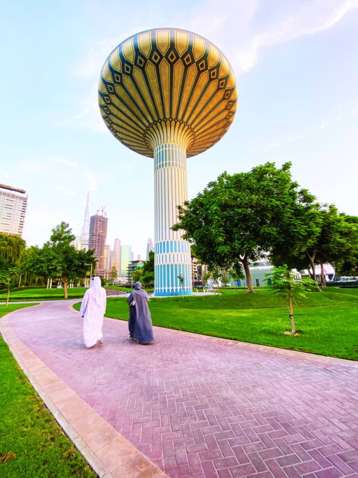 تحتضن حديقة الخزان في دبي عملاً فنياً مبتكراً، ضمن استراتيجية دبي للأماكن العامة، يقف الزائر أمامه مدهوشاً بجمال الخط العربي والأحرف المتداخلة، وتتناثر منه الأحرف في شكل فني إبداعي رائع، خرج من كل الصناديق المعتادة، ليكون فريداً من نوعه ومضمونه.
