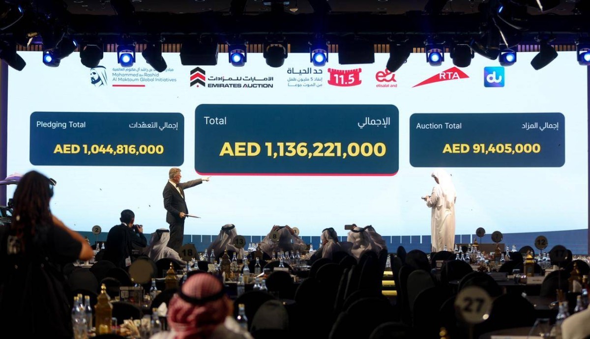 حصد مزاد «أنبل رقم» الذي نظمته مؤسسة مبادرات محمد بن راشد آل مكتوم العالمية في دبي 91 مليوناً و405 آلاف درهم، فيما بلغ إجمالي التعهدات والتبرعات المصاحبة للفعالية ملياراً و136 مليوناً و221 ألف درهم، شملت ملياراً و39 مليون درهم قيمة تبرعات المؤسسات خلال السحور الرمضاني الذي أقيم على هامش المزاد، وذلك دعماً لمبادرة «حدّ الحياة» الهادفة إلى إنقاذ خمسة ملايين طفل حول العالم.
