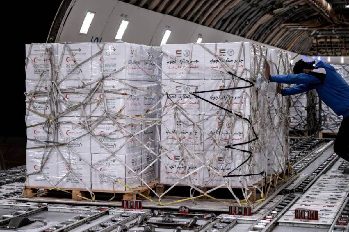 يواصل «جسر حميد الجوي» إرسال الطائرات الإغاثية المحملة بالمساعدات الإنسانية إلى قطاع غزة، ضمن الجهود الإنسانية المتواصلة لدولة الإمارات العربية المتحدة في إطار عملية "الفارس الشهم 3"، دعما للأشقاء الفلسطينيين والتخفيف من معاناتهم في ظل الأوضاع الإنسانية الصعبة التي يشهدها القطاع.
