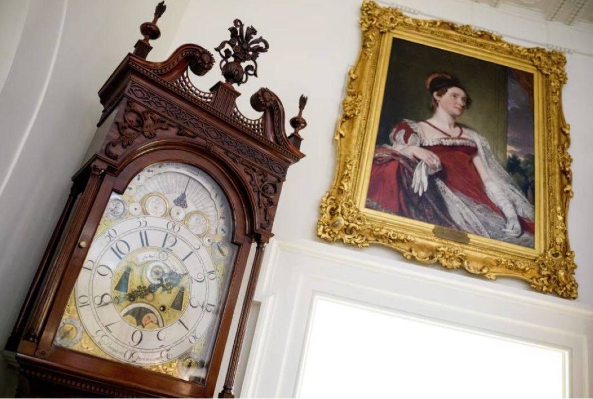 ثم لفتت انتباهه صورة لجون كوينسي آدامز بإطار مذهّب قائلاً: «أنظروا إلى هذه الإطارات… أنا من محبي الإطارات، أحياناً أحب الإطار أكثر من الصورة نفسها»، مما أثار ضحك الحضور.