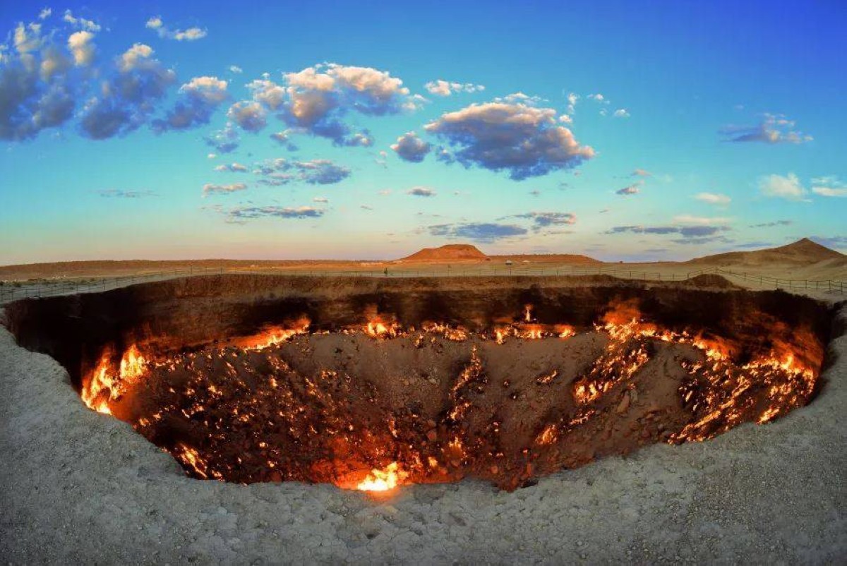 تقع حفرة الغاز دارفازا في تركمانستان، وهي حفرة نارية ضخمة تشكلت نتيجة انهيار حقل للغاز الطبيعي، وتبقي إمدادات الغاز النار مشتعلة حتى يومنا هذا، وأصبحت منطقة جذب سياحي، يبلغ عرض الحفرة حوالي 230 قدمًا وعمقها 98 قدمًا، لذا فهي ليست أكبر حفرة في هذه القائمة، لكنها مرعبة للغاية.