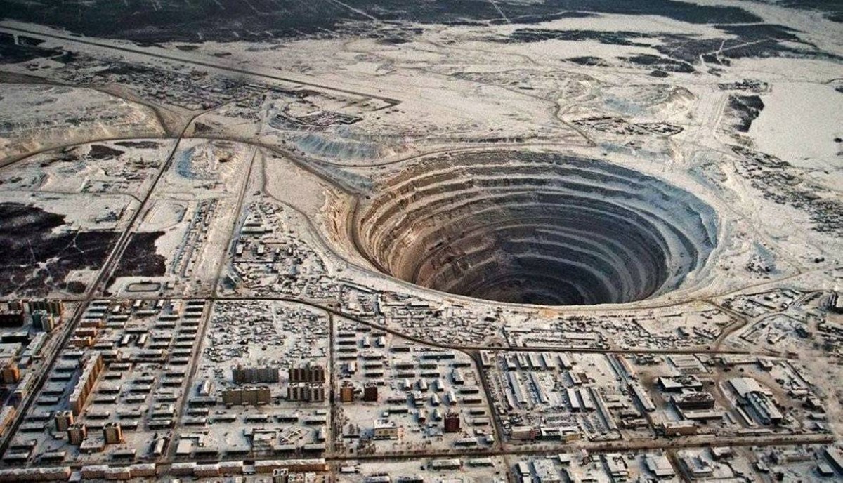 حفرة ميرني هي واحدة من أكبر الحفر المفتوحة في العالم وتقع في سيبيريا، بروسيا ويبلغ عرضها حوالي 1.2 كيلومتر وعمقها حوالي 525 مترًا. تم اكتشاف الألماس في هذه المنطقة في عام 1955 وبدأت عمليات التعدين في عام 1957. توقفت عمليات التعدين في الحفرة المفتوحة في عام 2001، ولكن التعدين تحت الأرض لا يزال مستمرًا.