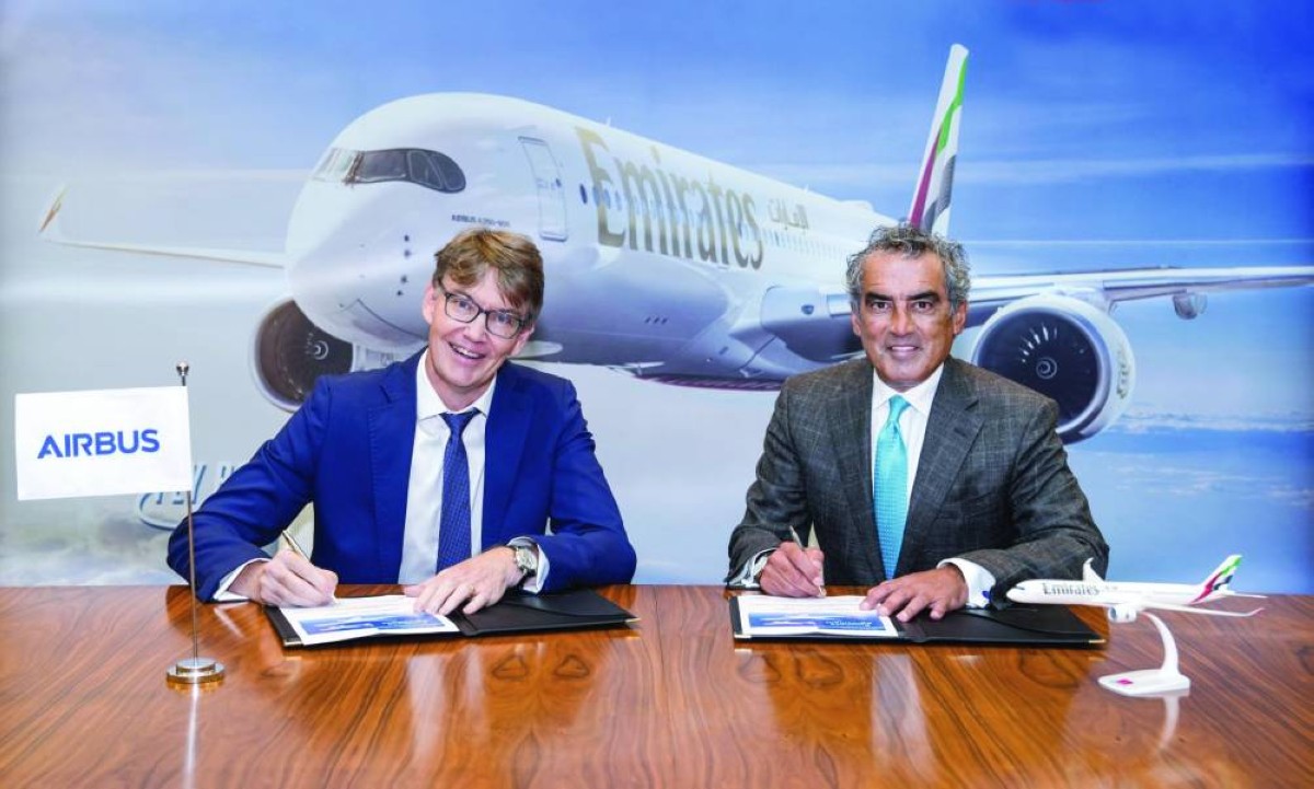 وقع الاتفاقية أحمد صفا، رئيس قسم الهندسة والصيانة في طيران الإمارات، ولوران نيجري، نائب الرئيس لخدمات العملاء في إيرباص أفريقيا والشرق الأوسط.