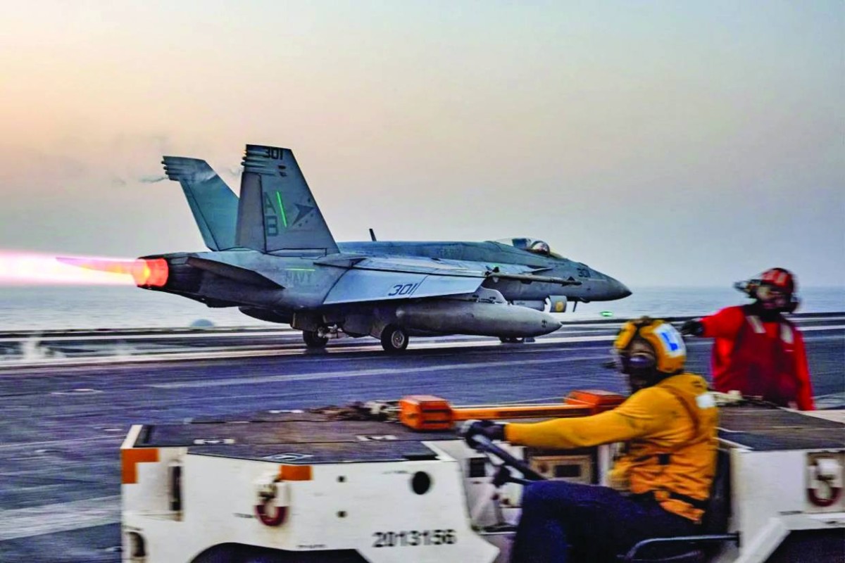 مقاتلة أمريكية «إف إيه-18 سوبر هورنت» تقلع من حاملة الطائرات الأمريكية هاري إس ترومان