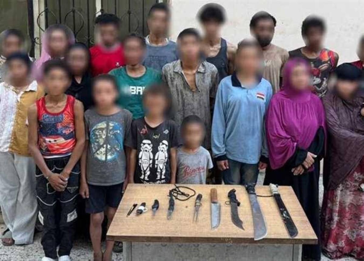 وأوضحت الوزارة أنه بعد تحديد الموقع بدائرة قسم شرطة الأهرام بالجيزة، تمكّنت قوات الأمن من ضبط 20 شخصاً بينهم 8 سيدات و5 أطفال، وتبيّن أن 7 منهم لهم معلومات جنائية سابقة، كما عُثر بحوزة 9 أشخاص على أسلحة بيضاء.