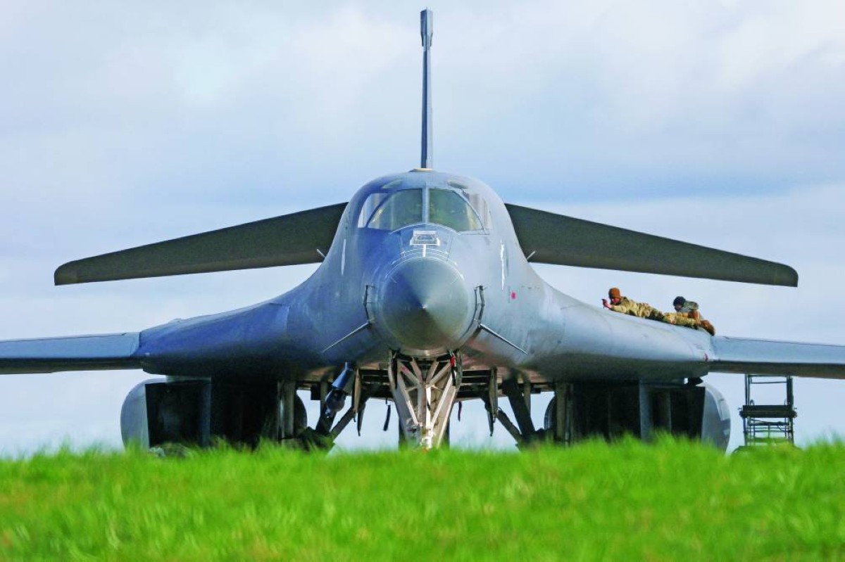 أفراد من القوات الجوية الأمريكية يقومون بأعمال صيانة على قاذفة قنابل من طراز «بي 1 بي»