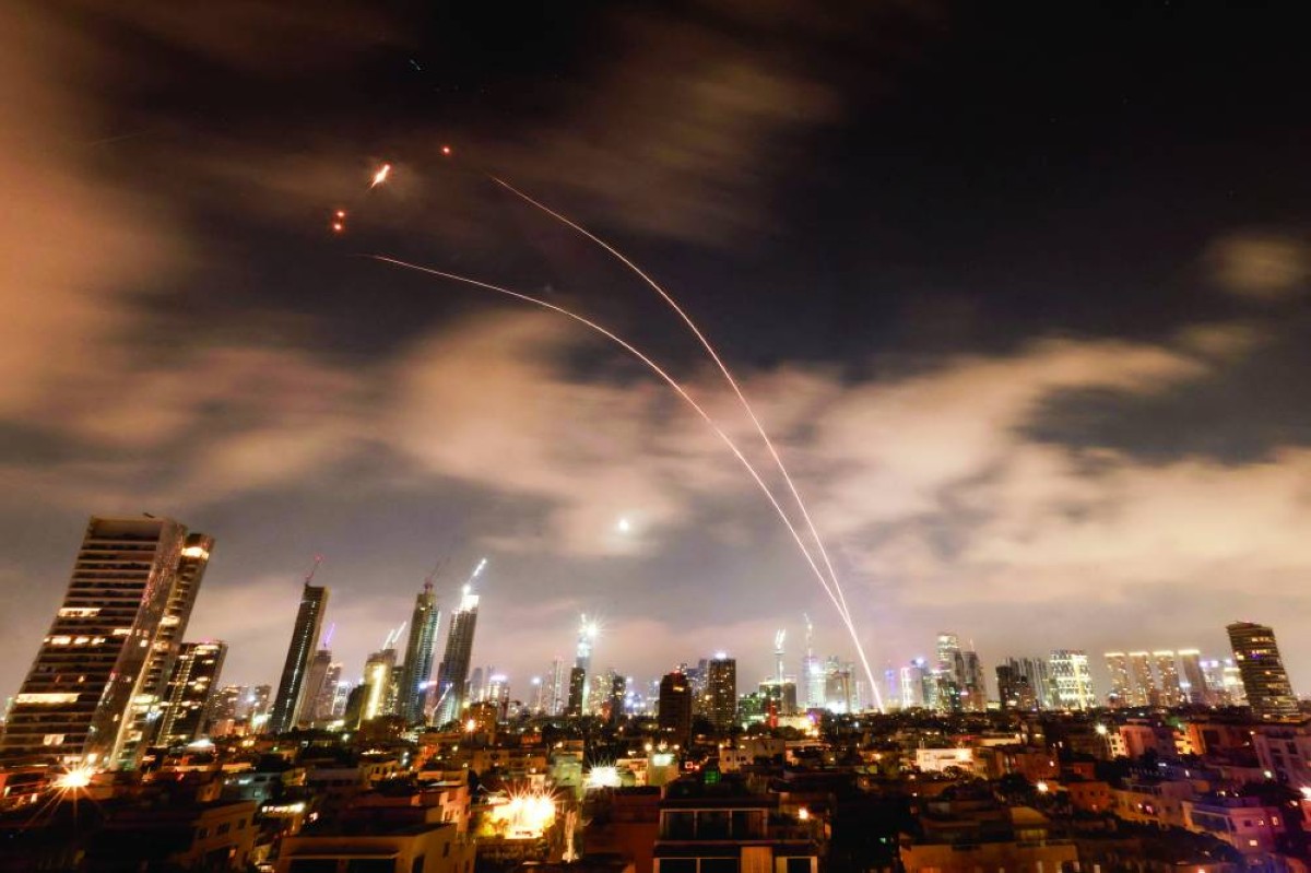 أنظمة الدفاع الجوي الإسرائيلية خلال محاولتها اعتراض صواريخ إيرانية فوق تل أبيب