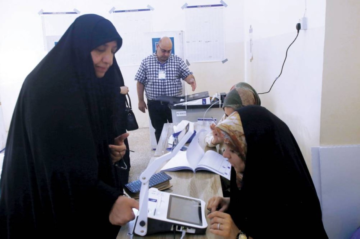 عراقية تدلي بصوتها في أحد مراكز الاقتراع ببغداد