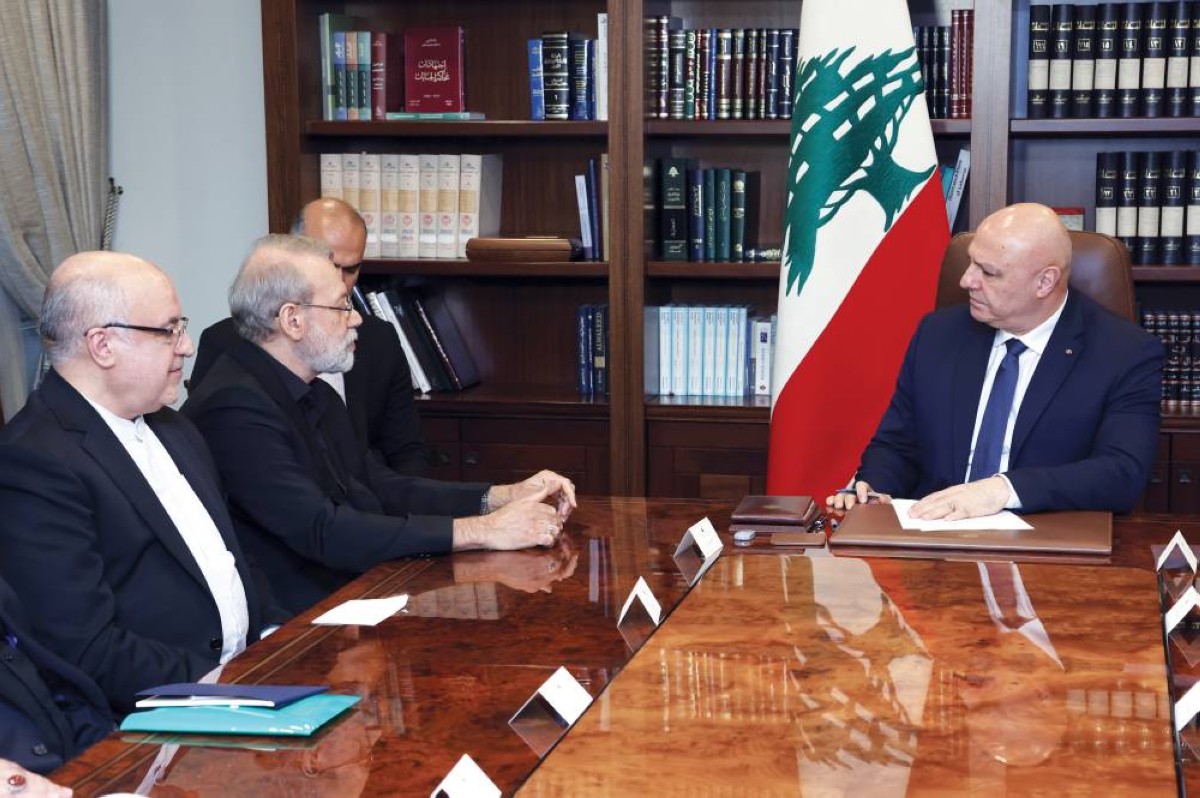 وفي رسالة مباشرة إلى لاريجاني، قال عون: «نرفض أيّ تدخل في شؤوننا الداخلية من أية جهة»، و«لا لحمل السلاح والاستقواء بالخارج».