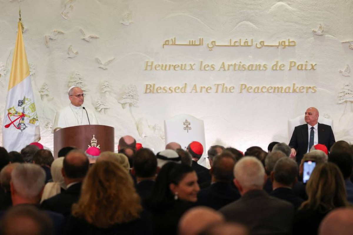 وفي خطاب ألقاه في القصر الرئاسي، بحضور المسؤولين اللبنانيين ودبلوماسيين وممثلين عن المجتمع المدني، شدد الحبر الأعظم على أهمية "السلام" الداخلي بين اللبنانيين، وهي كلمة كررها 27 مرة في خطابه، من دون التطرق الى الأوضاع الاقليمية والدولية أو الحرب الأخيرة بين حزب االله واسرائيل، التي تواصل شن ضربات دامية على لبنان.