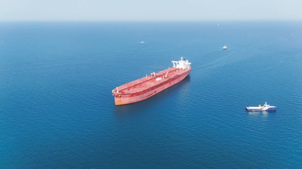 صورة جوية تُظهر ناقلة نفط عبرت مضيق هرمز ووصلت إلى المياه الإقليمية العراقية