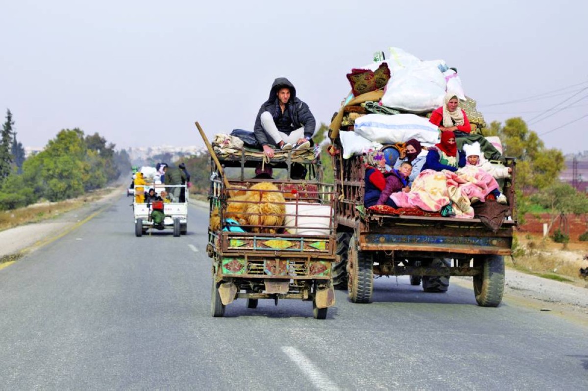 نازحون سوريون يغادرون بيوتهم في محيط مدينة حماة بعد اشتباكات بين الجيش السوري والجماعات المسلحة