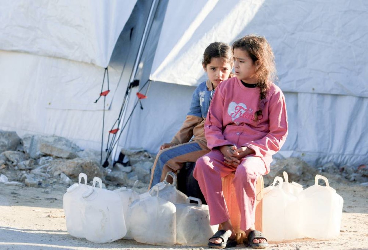 أطفال فلسطينيون في مخيم للنازحين بمدينة غزة