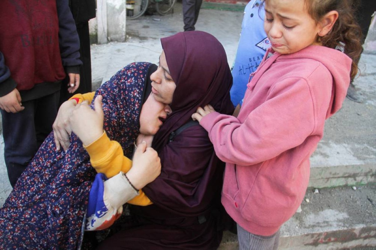 أسرة منهارة عقب مقتل أحد أفرادها بغارة إسرائيلية على مدرسة تؤوي نازحين في غزة