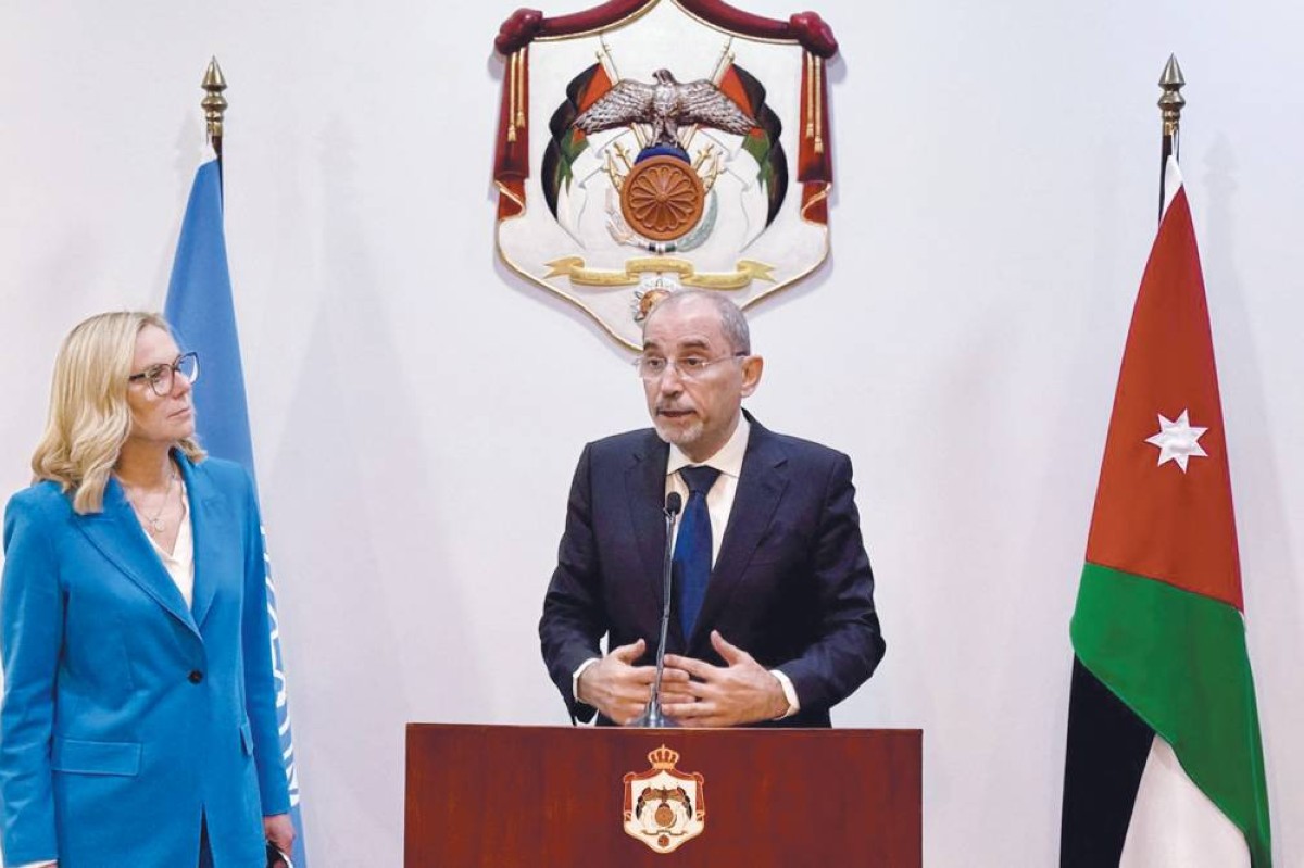 أيمن الصفدي والمنسقة الأممية سيغريد كاغ خلال مؤتمر صحافي بعمان الأحد