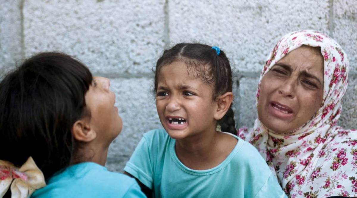 بكاء أم وطفلتها في مستشفى ناصر بخان يونس