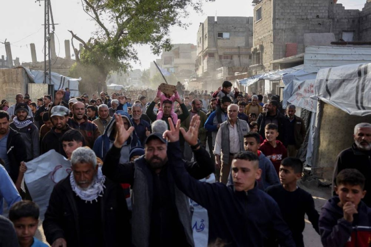 مئات الفلسطينيين يتظاهرون في شمال غزة ضد حماس