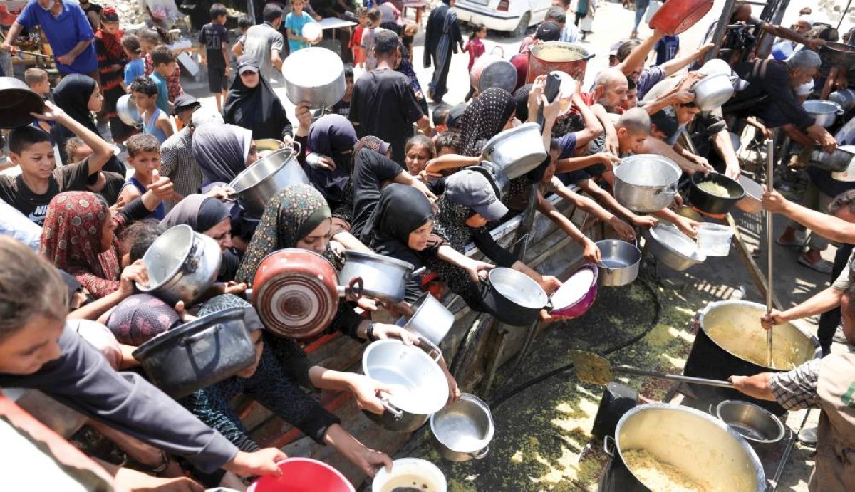 فلسطينيون ينتظرون الحصول على الطعام من مطبخ خيري في مدينة غزة
