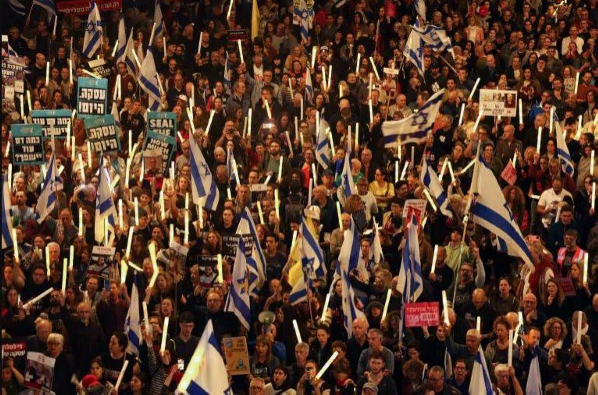 واحتشد المتظاهرون خارج منازل ستة وزراء من بينهم وزير الدفاع يسرائيل كاتس ووزير الخارجية جدعون ساعر. كما من المقرر تنظيم احتجاج كبير في أنحاء البلاد بعد غد الثلاثاء.