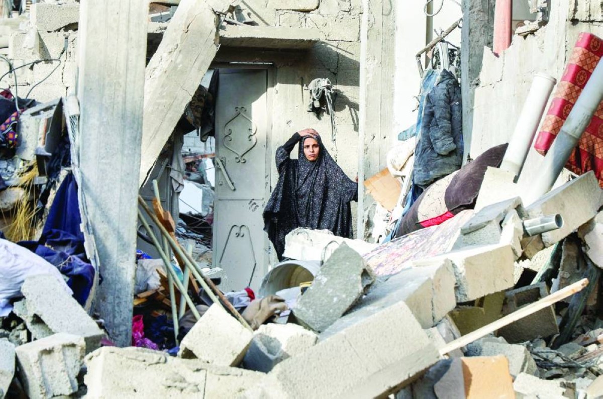 فلسطينية تتفقد موقع غارة إسرائيلية على منزل في خان يونس