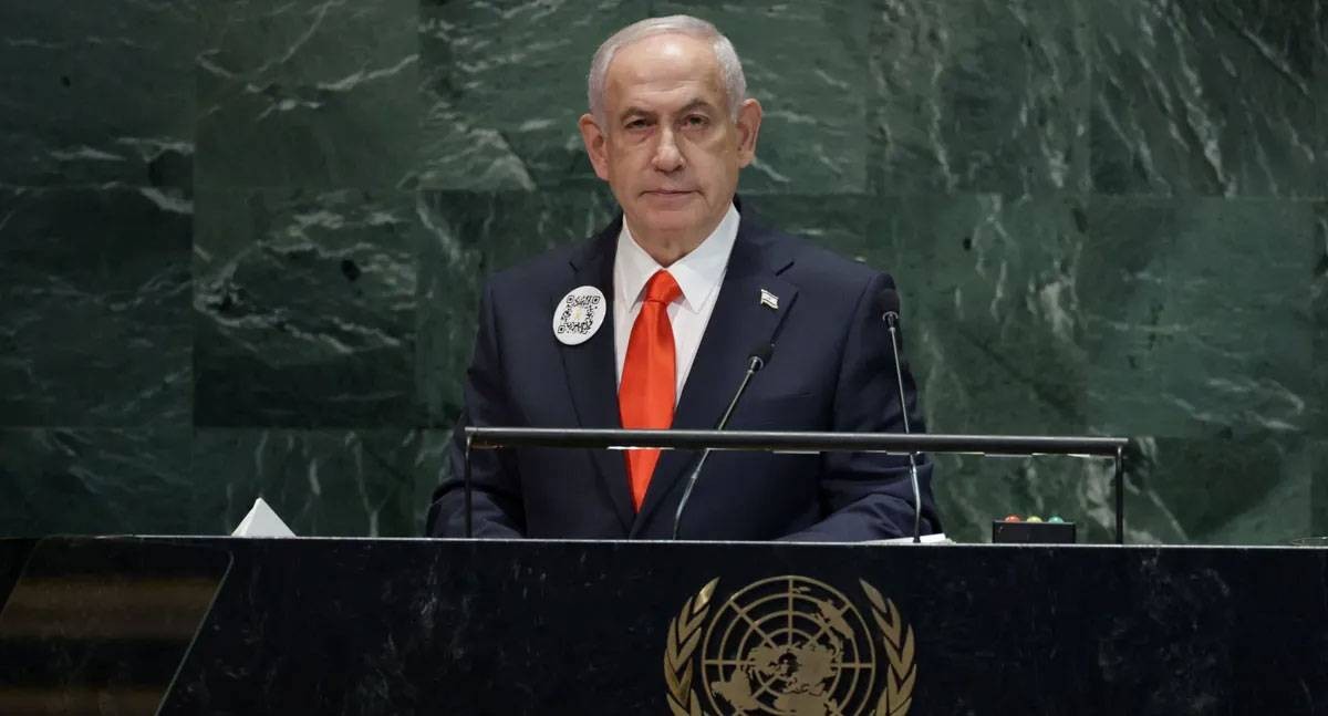 وقال نتانياهو في كلمته أمام الجمعية العامة للأمم المتحدة "هذه رسالة أخرى الى القادة الغربيين: إسرائيل لن تسمح لكم بأن تفرضوا دولة إرهابية علينا.