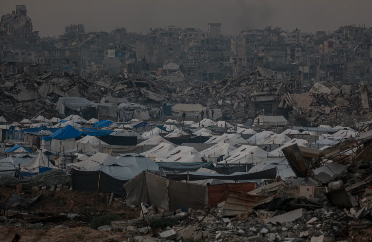 وتبقى ظروف المعيشة لأكثر من مليونين من سكان غزة بالغة السوء. إذ يقيم معظم الفلسطينيين في خيام نُصبت داخل مخيمات مكتظّة للنازحين وعلى طرقات مغطّاة بالركام. وقد فاقم دخول فصل الشتاء الأوضاع، مع هطول أمطار غزيرة أغرقت المخيمات.