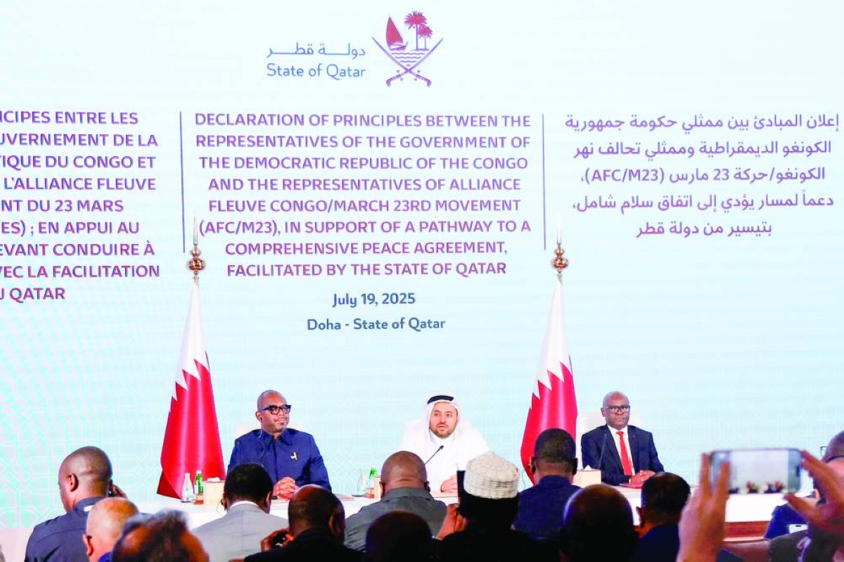 وقّعت حكومة جمهورية الكونغو الديمقراطية وحركة إم 23 اتفاق سلام في الدوحة، أمس، بعد أشهر من المباحثات. جاء ذلك في إعلان مبادئ وقعه الجانبان بعد محادثات استمرت ثلاثة أشهر في الدوحة، وعقب اتفاق سلام منفصل تم توقيعه الشهر الماضي في واشنطن بين كيغالي وكينشاسا.